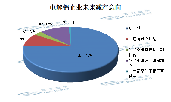 2、由上可以看出,A类(坚决不减产)的企业开工产能占比最大,占比达总开工产能的69%,而在此间各氧化铝主要产出省份均有一定坚决不减产的产能,其中山东、广西地区当前开工产能均无减产计划,主要由于山东以及广西地区氧化铝企业在成本端优势较为明显,同时下游电解铝企业开工正常长单稳定所以无需减产;山西、河南地区也有一部分坚决不减产的企业主要为前期个别企业已有一定的减产出现并不会继续减产,另外个别企业仍考虑市场份额以及自身现金流问题所以坚持生产;其余地区仍有一定的开工产能不会减产主要是受到市场、长单等因素的影响。 3、依据数据显示D类(继续下跌则减产)的企业开工产能占比约占总开工产能的16.92%,此部分也是当前阶段市场需要重点关注的部分,继续下跌则减产的产能主要分布在山西、河南以及贵州地区。山西、河南地区原本氧化铝生产成本较高所以使得当地氧化铝企业压力较大,但近期两地原料端价格频频下跌导致成本有所下滑,抗压能力有所提升,但后期仍需密切关注晋豫两地氧化铝企业生产动态。贵州地区部分企业同样抱有如价格继续下跌则会减产的态度,但预计更多的为压产,实际情况尚待观察。 综上所述,当前虽然氧化铝市场价格较为低迷,但仍有部分企业由于成本具有一定的优势无需减产,产能较大的企业或将考虑少量压产或减部分生产线,而成本较高的氧化铝企业则在权衡自身成本、利润等条件,后期或有减产出现。中国氧化铝企业开工情况的变化也将对于国产氧化铝市场价格走势产生一定的影响,与此同时国产氧化铝价格方面的走势仍需关注下游电解铝企业开工产能增减导致氧化铝需求方面发生的变化以及海外氧化铝价格的波动。 二、电解铝 进入2020年由于新冠肺炎疫情影响,全球经济进入倒退时期。铝行业也受到一定影响,2020年2月开始全球铝价进入下跌时期。百川盈孚对于近期电解铝企业心态进行调研,截至4月17日,中国电解铝建成产能为4676.3万吨,开工产能为3615.63万吨,百川将开工产能按照A(坚决不减产)、B(计划减产)、C(保持目前价格一段时间后减产)、D(价格继续下跌则减产)、E(外部条件干预不可减产)分为五类,具体分布如下: 1、从图看出,目前中国电解铝企业较大部分处于A类(坚决不减产)之列,不减产的开工产能达到2715万吨占全国总开工产能的75%,目前不减产开工产能占比高于预期,主要是由于:1)电解铝行业的特殊性,电解槽一旦关停再想开启资金成本消耗较大。2)近期原料端氧化铝、阳极等价格在持续走低,降低电解铝生产成本。3)近期中国铝锭市场价格走高,电解铝企业亏损减少,企业减产决心下降。 从图发现不减产电解铝企业主要集中在新疆、内蒙、山东。根本上看还是成本因素决定,新疆、山东、内蒙地区的自备电优势较为明显,成本优势使得企业在铝价低谷时仍可坚持生产。 2、B(计划减产)以及C(保持目前价格一段时间后减产)类企业开工产能合计占比约占总开工产能的12%,这部分企业将是目前电解铝市场减产的主要来源,这类企业多是部分电解槽老化,在铝价较为可观时维持生产,而目前铝价低位时趁机整修以减少暂时的亏损以及后期人力、财力的消耗。 3、D类(继续下跌则减产)开工产能占比约占总开工产能的12%。这部分企业主要集中在河南、山西、云南、甘肃等地,上述地区企业生产成本较高,在铝锭市场价格走低时,抗压能力有限,这部分企业将密切关注市场价格,若价格再次下跌,跌破企业心里价位,亏损增加,则这部分产能将考虑减产。 4、值得注意的是E类(外部条件干预不可减产)企业,这部分企业占比较小,只占到总开工产能的1%左右,但此类企业实则本身可能并不具有优势,但由于承担一部分政治任务,所以即使在企业亏损的前提下也不得不继续生产,其中比较有代表性的是贵州、重庆等西南地区。 综上,需要注意,虽然目前中国电解铝市场价格连连上行,但此波行情主要由于铝锭价格低位,电解铝生产企业有意控制铝锭流出量;贸易商以及下游加工企业趁低位囤货;终端企业赶制前期拖欠订单,放大了铝锭需求量,使得市场好于预期,拉高铝价。但其减弱了电解铝企业减产的决心,使得不减产产能增加,减缓中国电解铝供应端下降脚步。四月过后,出口影响逐渐显现,下游订单需求减少,铝制品需求减弱,铝锭可能出现再次累库,从而影响后期铝价走势。