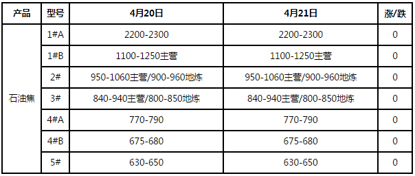 市场总结:今日国内石油焦价格稳定,市场交投氛围稳定。进入4月份下旬,石油焦市场交投氛围平稳,随着价格跌至相对低位,下游客户接货积极性保持平稳。目前大部分炼厂库存维持低位,此因素将对短期市场形成利好支撑,但经济环境不佳,市场氛围依旧不容乐观。 据测算,4月21日国内石油焦均价为883元/吨,较昨日持稳。山东地炼均价在850元/吨,较昨日持稳。 煅烧焦市场:石油焦市场交投氛围暂无较大利好表现,受下游厂家稳定采购支撑,煅烧焦短期出货保持良好势头,但5月份预焙阳极价格仍存在下行预期,市场依旧难言向好。 后市展望:国内外环境不佳因素导致市场心态不平稳,在碳素产品依旧存在下行预期背景下,卓创预计近期石油焦市场将会弱势盘整为主。