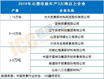 随着近几年中国电炉钢需求的发展,国内石墨电极保持较高的发展速度增长,但行业集中依旧较为分散,但年产量超过10万吨以上的企业,截止2019年仍只有方大炭素一家。