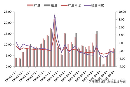 6月展望:3月以来,我国疫情基本得到控制,汽车产销逐步恢复,加之各地促进汽车消费政策纷纷落地,4、5月份前期受抑制的需求逐步得到释放,这也导致5月汽车产销数据向好,但6月份汽车产销将再度回归常规水平,考虑到疫情的影响还未完全消除、经济增速下滑叠加传统消费淡季的影响,预计今年6月汽车产销同比增速不会太高,初步预估6月全行业用铝量有望达到29万吨左右。