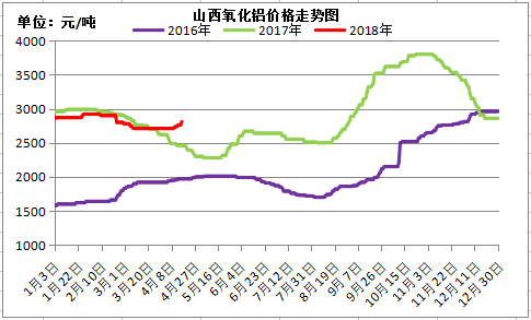 因中美贸易战,美国氧化铝价格上涨,受此影响,自上周开始氧化铝行情开始向好,价格持续上行,支撑了业者的心态。