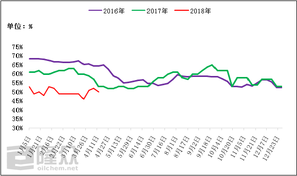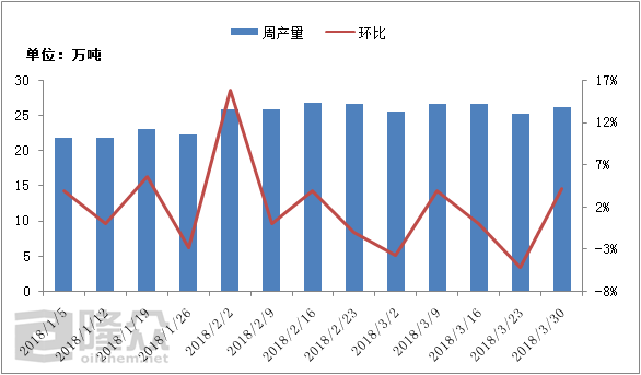 隆众资讯统计,目前二铵2018年第15周周产量约为24.52万吨,环比下跌3.43%,因基层市场拿货氛围欠佳,市场整体需求动力不足,实际成交新单偏少,加上二铵的企业待发量较大,库存不断增加,企业销售承压,部分企业为限产保价,计划停车检修,这也是4月份二铵延续疲软走势的重要原因之一。