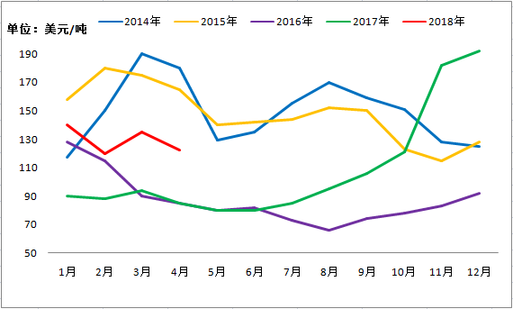 根据4月份中东地区官价结果:沙特FOB122美元/吨、卡塔尔FOB118美元/吨、阿联酋FOB127美元/吨。虽其环比大致有13-16美元/吨幅度的下滑,但考虑到海运费用相对较高,上述美金价核算为人民币到岸成本还明显高于当前港口现货市场参考价,这使得商家所谓的换手操作方法难有一步到位的效果,或许只得寻求不断的轮转来降低持货的成本,当然该操作这也变相的增加运作的资本,商家的积极性因而大打折扣,此外下游磷铵市场的整体疲弱,也综合导致着磺市交投清淡态势进入持续或者说不利的循环状态中。