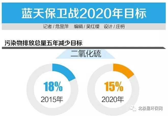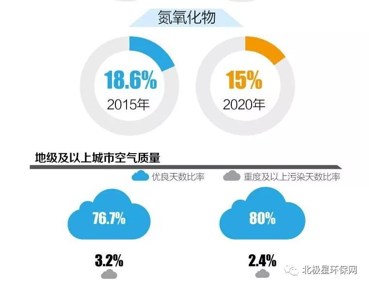 《行动计划》指出,到2020年,二氧化硫、氮氧化物排放总量分别比2015年下降15%以上;PM2.5未达标地级及以上城市浓度比2015年下降18%以上,地级及以上城市空气质量优良天数比率达到80%,重度及以上污染天数比率比2015年下降25%以上;提前完成“十三五”目标的省份,要保持和巩固改善成果;尚未完成的,要确保全面实现“十三五”约束性目标;北京市环境空气质量改善目标应在“十三五”目标基础上进一步提高。
