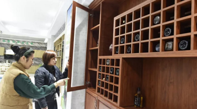 山东伊斯特家具有限公司展厅内顾客在选购铝制家具