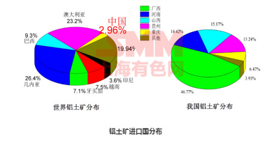 我国氧化铝年产7000万吨,占世界55%以上,我国铝土矿储量占世界不到3%,对外依存度超过50%。