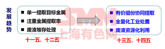 最后,于海燕表示我国矿产资源冶炼的发展趋势由过去的“单一提取目标金属、注重金属提取率、废渣堆存处理”已经转变为“有价组份协同提取、全量化工业处置、废渣资源化利用”。