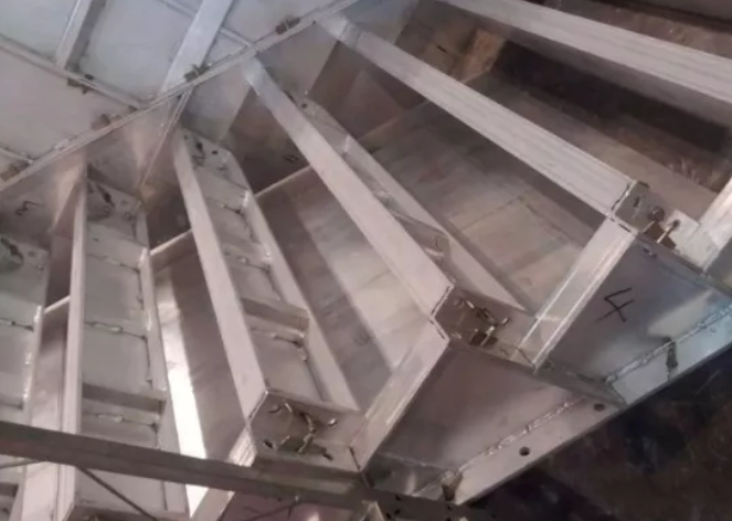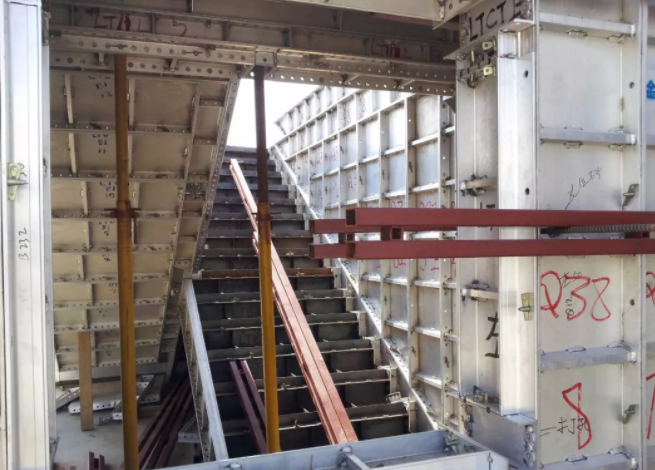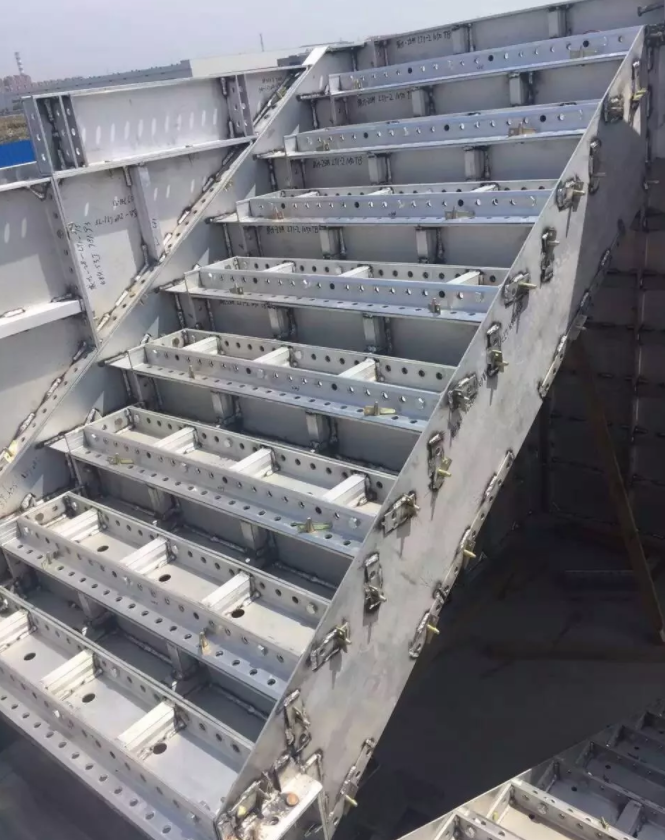 楼梯这个部位的铝模各种形式都有,只要能保证施工效果就是好的模板。