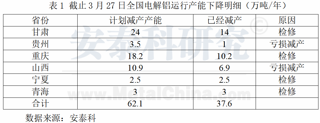第三种方式是减产。企业不堪承受亏损带来的经营压力而被动减产,从以往市场情况来看,减产是过剩市场中抑制价格下跌最直接的办法。2015年底铝价跌破万元后便是在全行业出现超过400万吨的大规模减产后触底回升。安泰科统计,年初至今国内电解铝企业运行产能较正常运行减少37.6万吨/年,还有24.5万吨/年的减产计划将于近期陆续实施。但上述产能缩减多以电解槽检修为主,部分企业推迟了电解铝大修后的重启或者提前大修,真正市场化减产仅有10万吨左右。2019年全行业盈利水平较高且一直持续至2020年1月,刚进入亏损的行业需要时间来制定应对策略,同时前期的高额利润仍可支撑企业当前的资金流,企业多采取观望的心态,稳定生产期待后期有政策支持或者需求的回升。